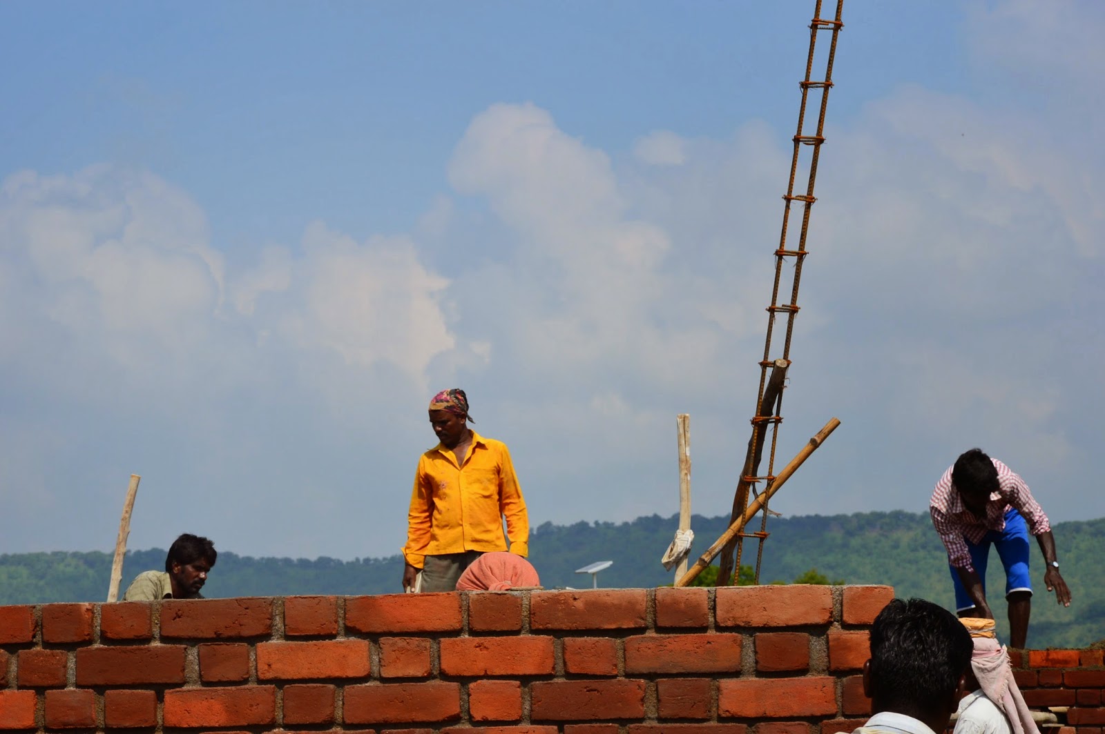 Philippe gave the workers of greenlandashram a challenge that if they finish upto lintel today that he will raise their salary so you can see so much workers in one place the canteen ;;;;the work is in full swing